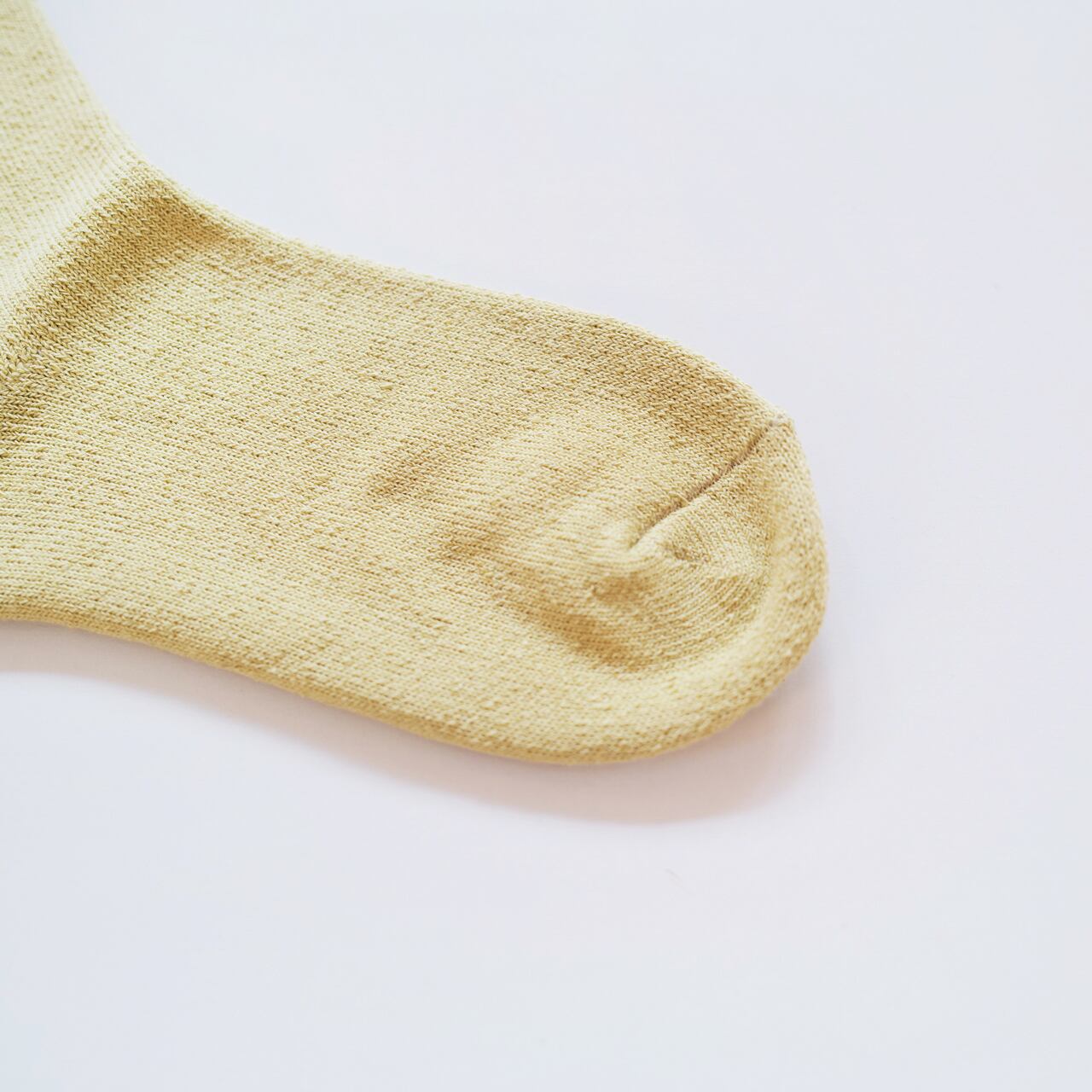 絹糸はお洗濯を繰り返すうちに麻糸のような質感となり、夏は1枚が心地よく、寒い時期は重ねばきしていただくと、空気層も加わって保温性が高まるためあたたかく、1年を通して履いていただけます。