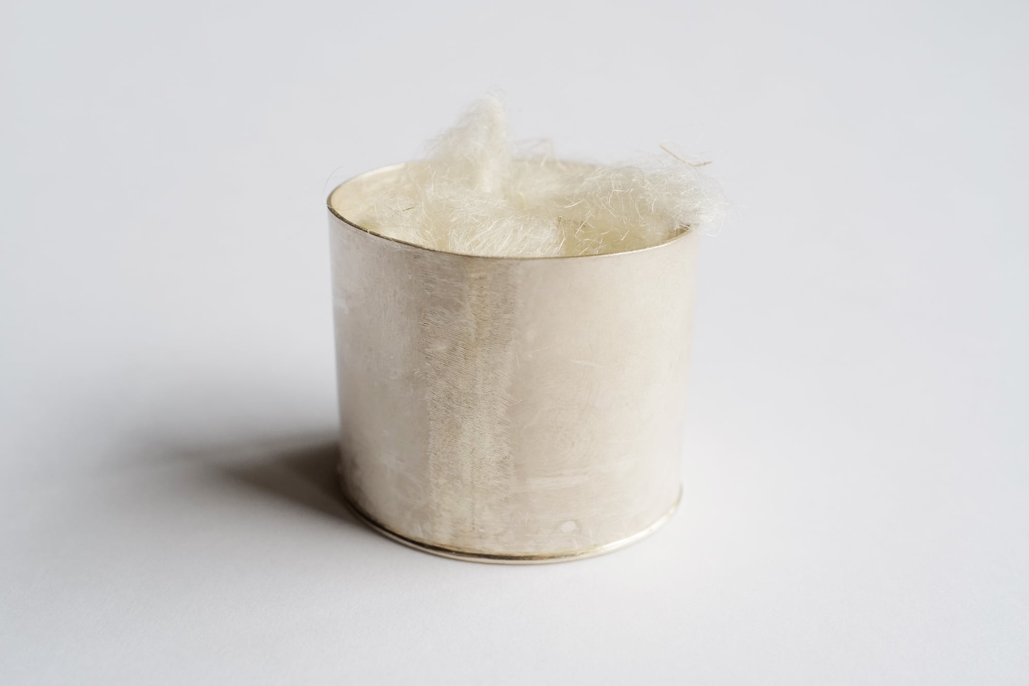 中に綿などを詰めると、リングピローにもなります。ご自身でクッションをつくり、中にいれることでピンクッションにも。銀の白仕上げにつき、最初は真白でじっくりと経年変化していきます。
