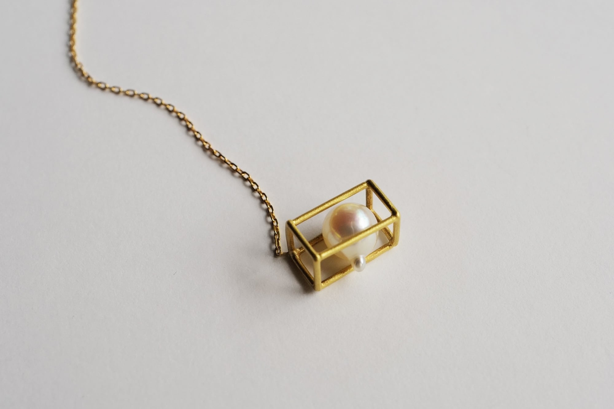 金のゆりかごの中で、ゆらゆらと乳房のようなアコヤパールが気持ちよさそうにゆられます。そのすがたは、まるで生まれたての赤ちゃんのよう。