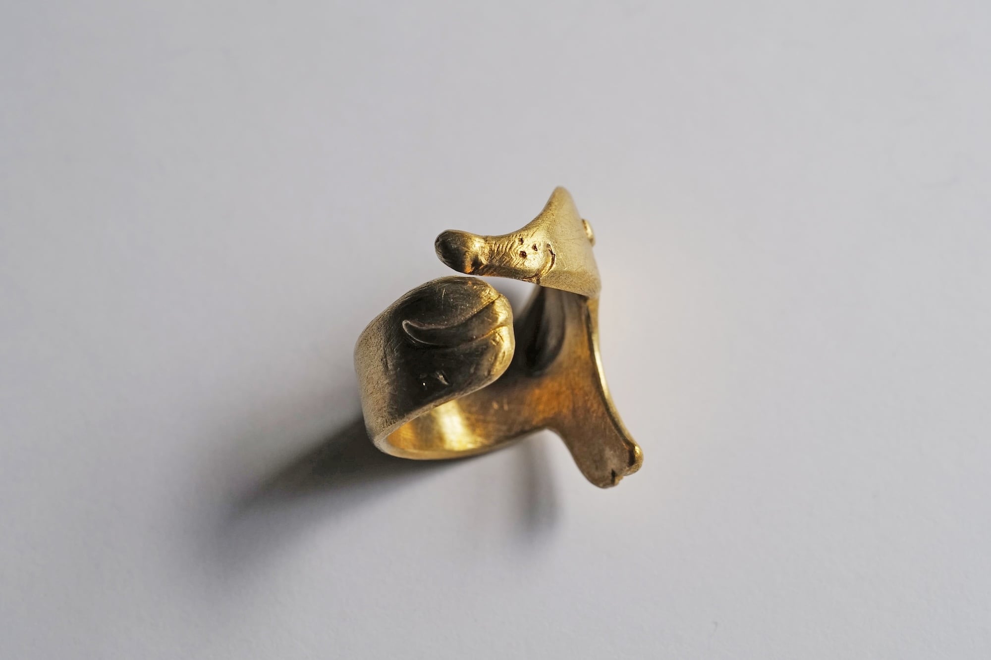 ダックスフンドのような長い胴が、指にまきつき、手指の守護神のようになってくれます。ちらっと見えるお顔は、とっても愛らしく、まるで話しかけているよう。