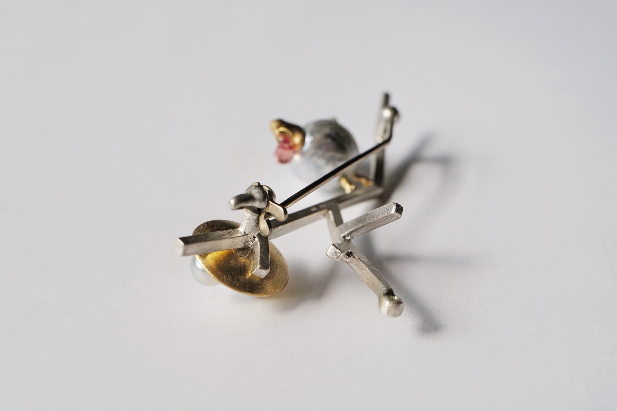 愛媛県宇和島でとれたアコヤバロックパールを、小鳥に仕立てたシリーズ「humming」。