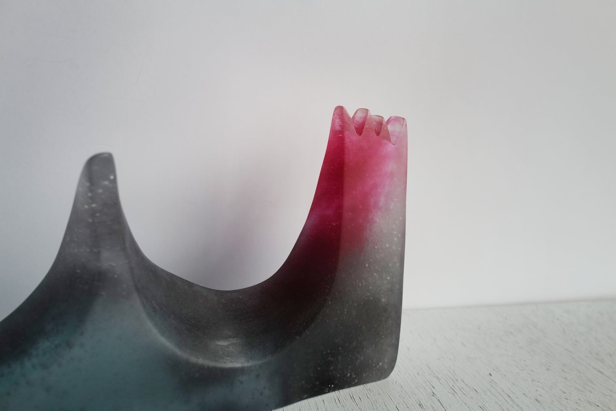 加藤さんは水粘土で原型を作り、その土の肌を残すように手作業でガラスを磨かれています。原型も石膏型も1度しか使用できないため、1点ものになります。