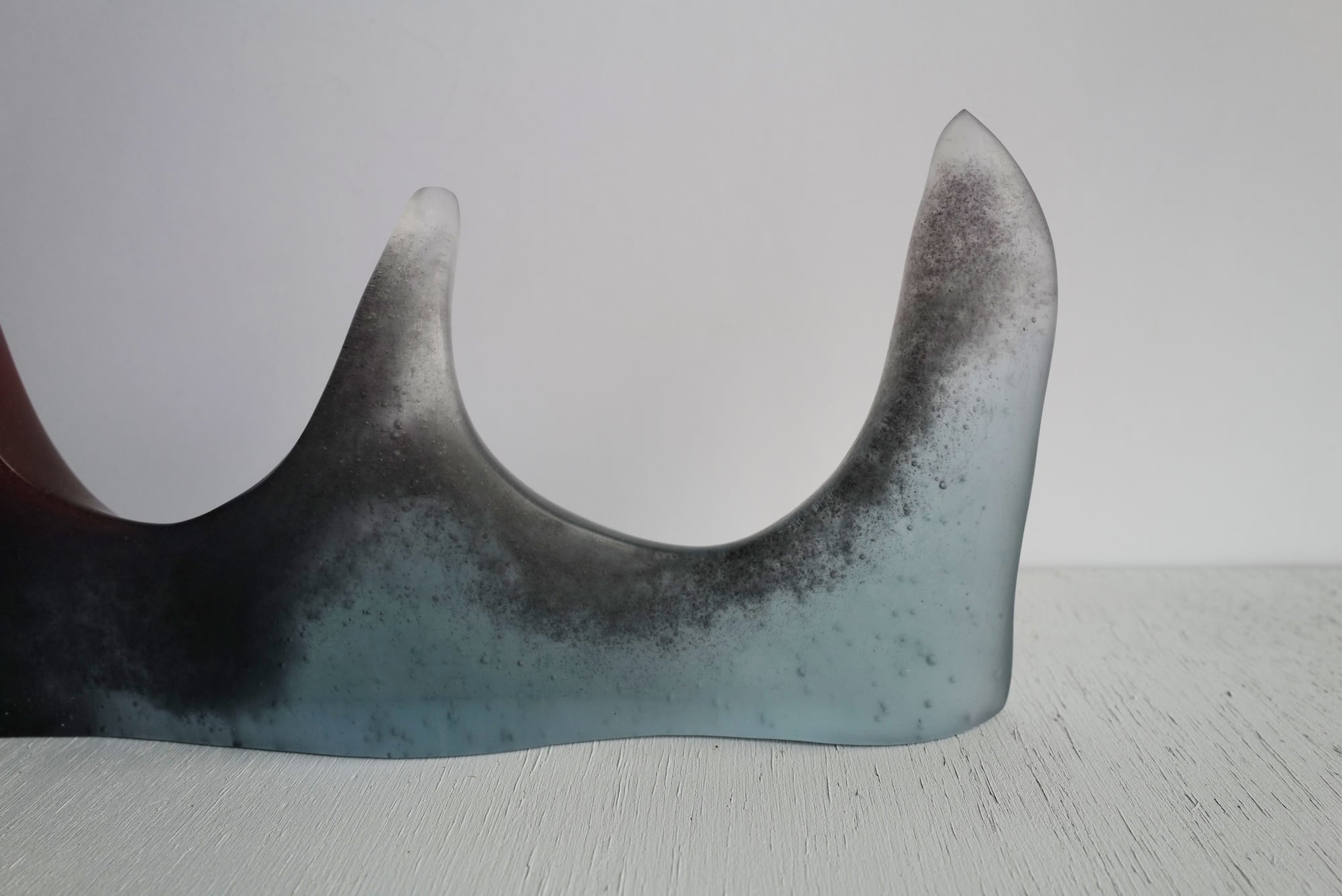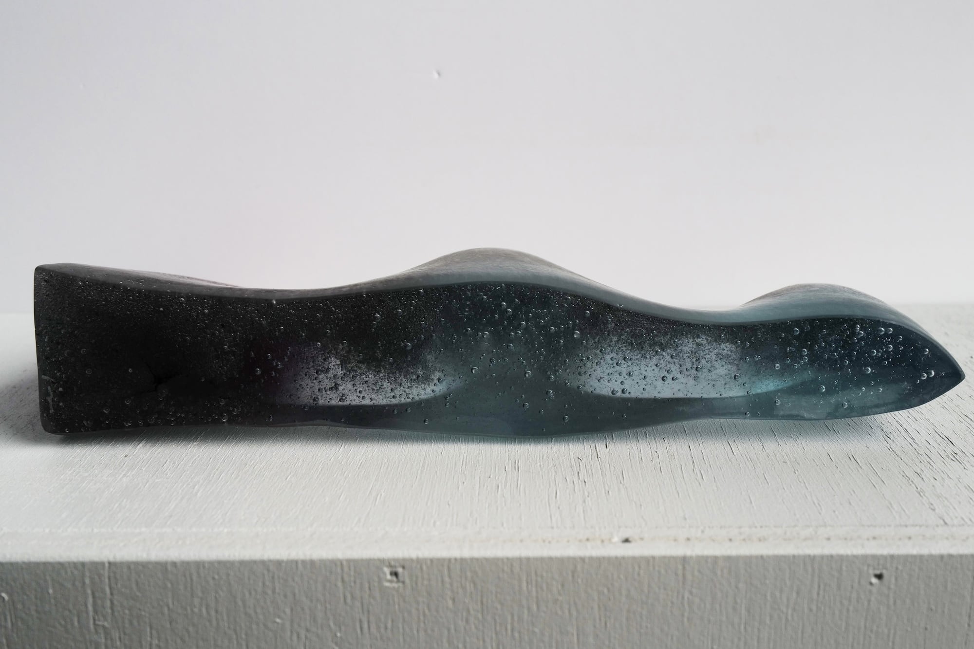 ガラスの粉やカレットを詰めた石膏型を電気窯で850度で焼成し、ガラスを溶かして石膏型に鋳造する技法です。パート・ド・ヴェールとも呼ばれます。