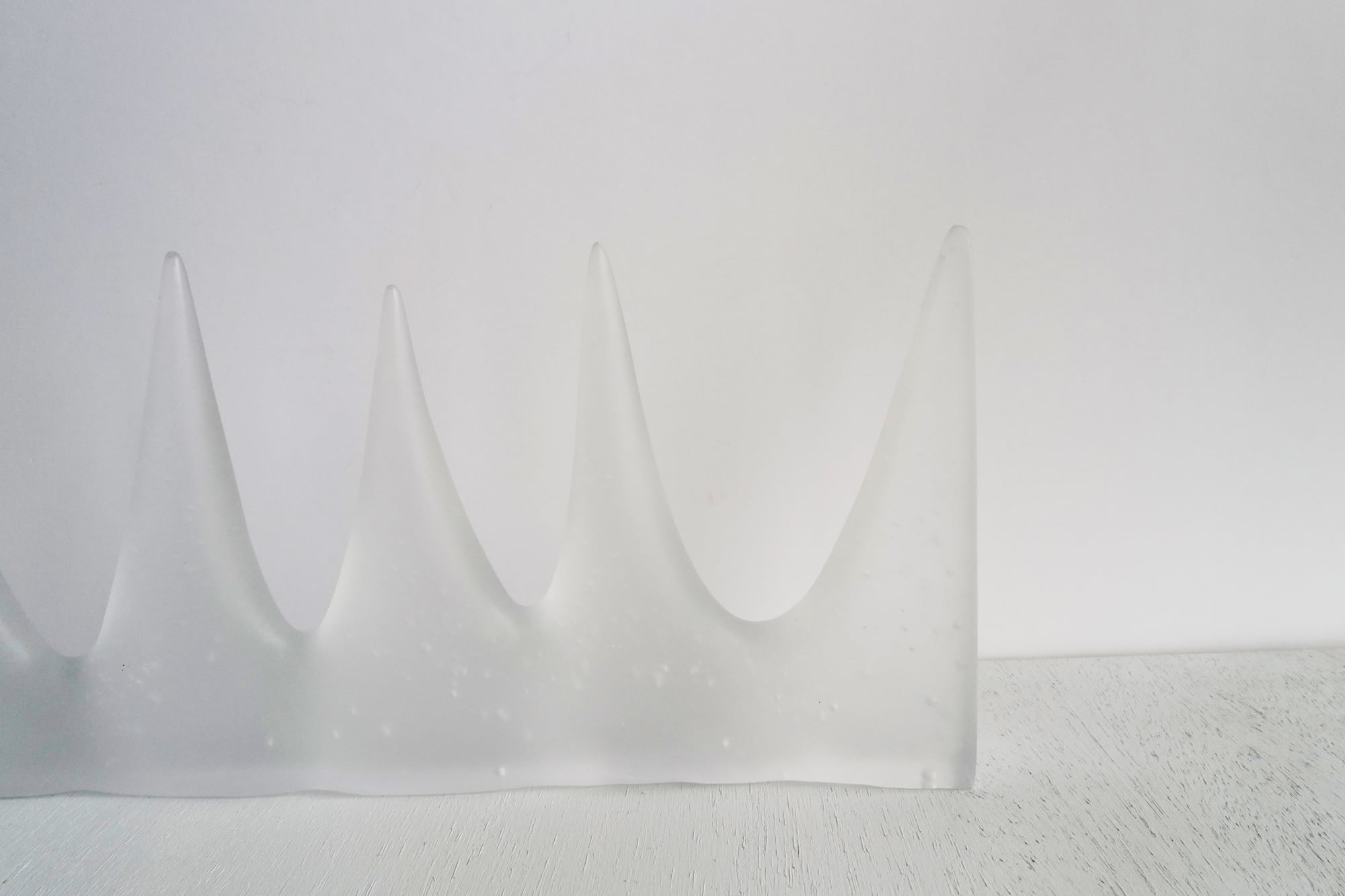 ガラスの粉やカレットを詰めた石膏型を電気窯で850度で焼成し、ガラスを溶かして石膏型に鋳造する技法です。パート・ド・ヴェールとも呼ばれます。