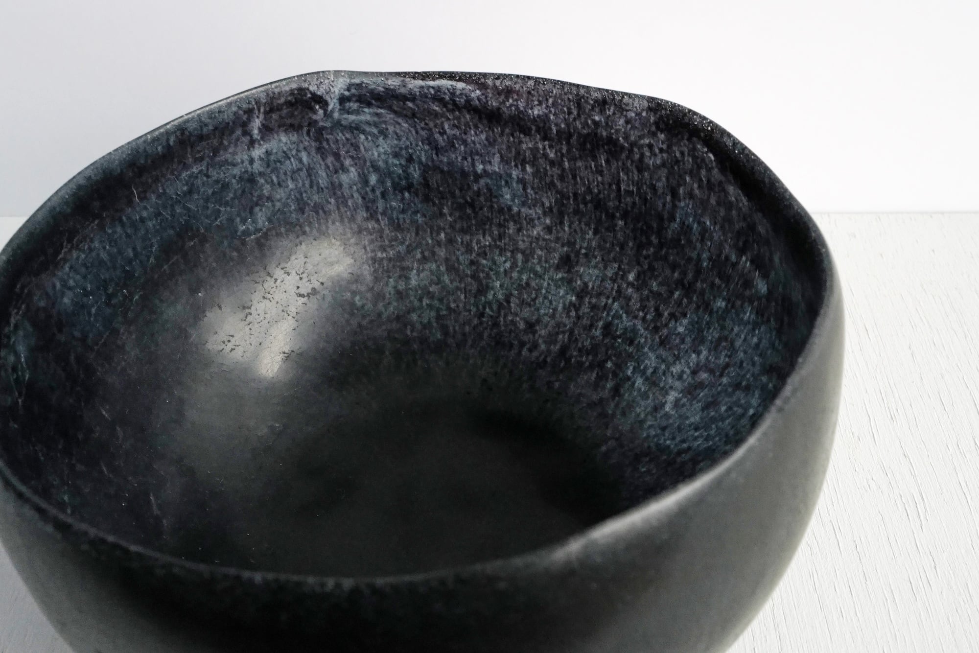 そこで、ご自身のお茶碗で抹茶を立てて、手で包むように「いただく」という行為に魅力を感じ、今も制作を続けられているそうです。両手で包んで持ったとき、一般的な焼き物だとお茶碗の向こう側は見えないですが、ガラスだと手のシルエットが見え、何とも幻想的な景色を見ることができます。