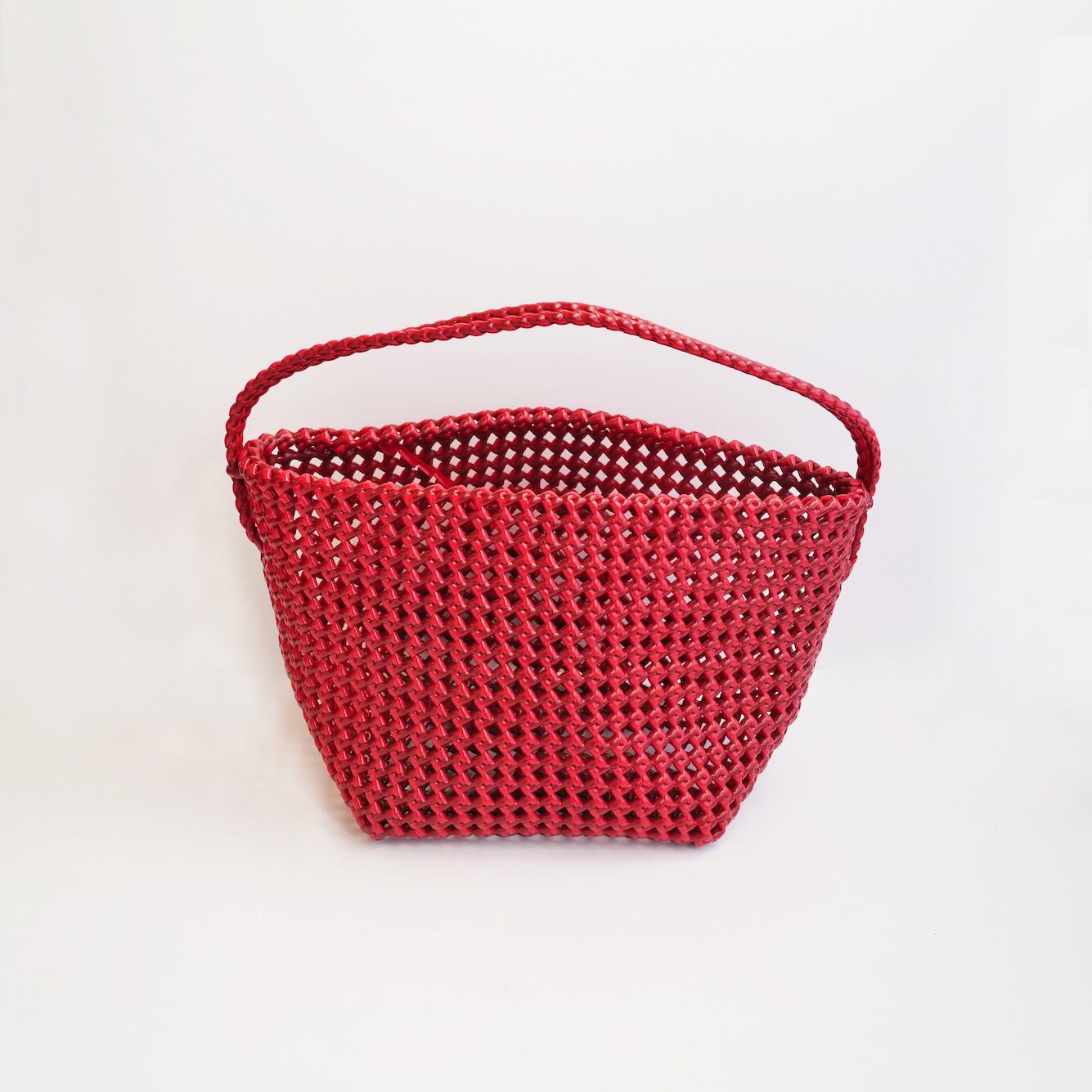 インドの手仕事によって一つひとつ丁寧に編み上げられた ワイヤーバッグ。柔らかなプラスチック製ワイヤーを使って織られているため、軽やかな手触りでありながらしっかりと自立します。