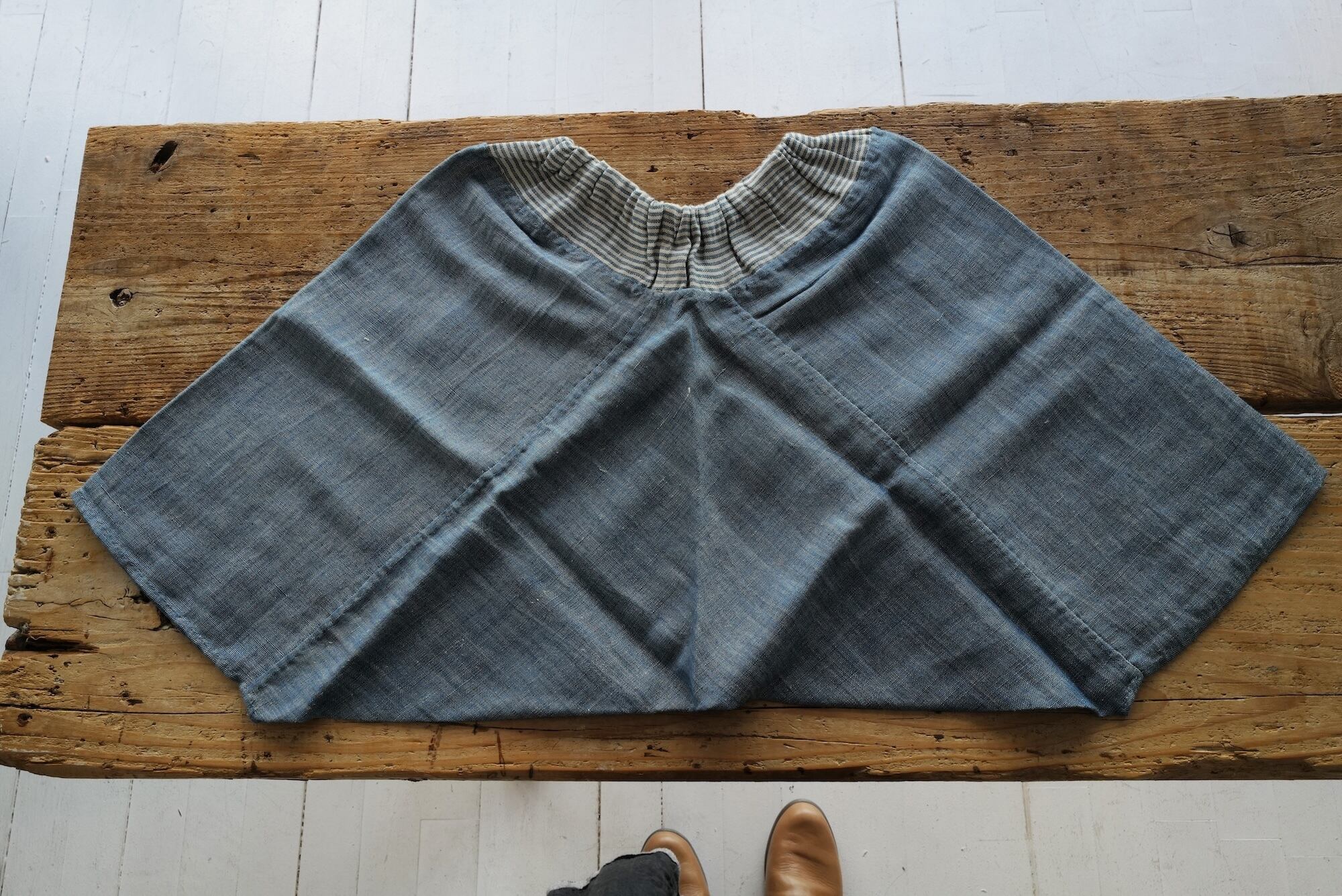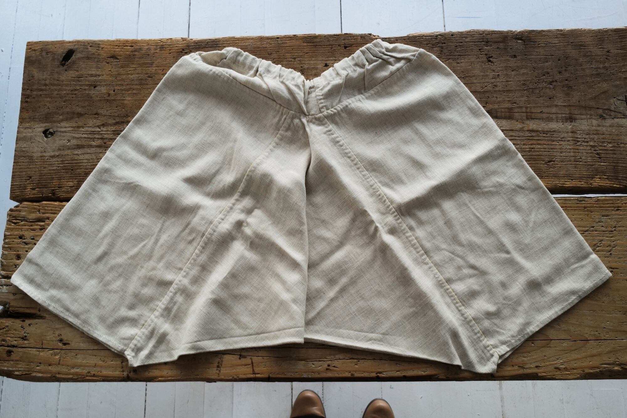 手紡ぎ手縫いの子リスパンツ。
